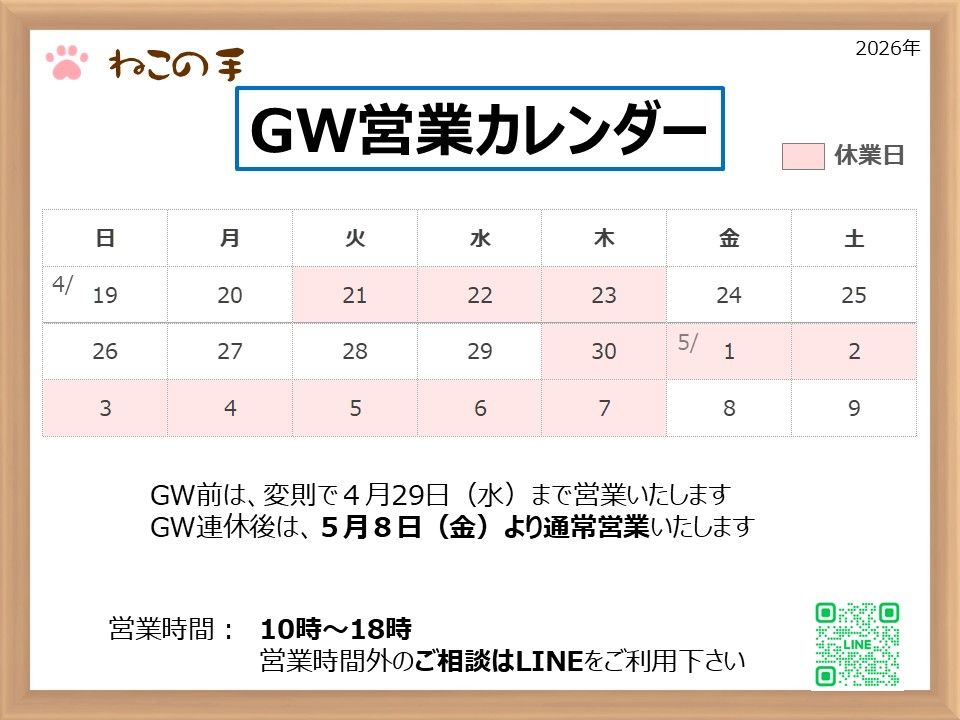 なお、連休中でも、LINEでのお問合せは、随時対応させて頂きます。